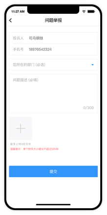 進入小程序,點擊首頁內部監察問題反饋,進入問題反饋頁面